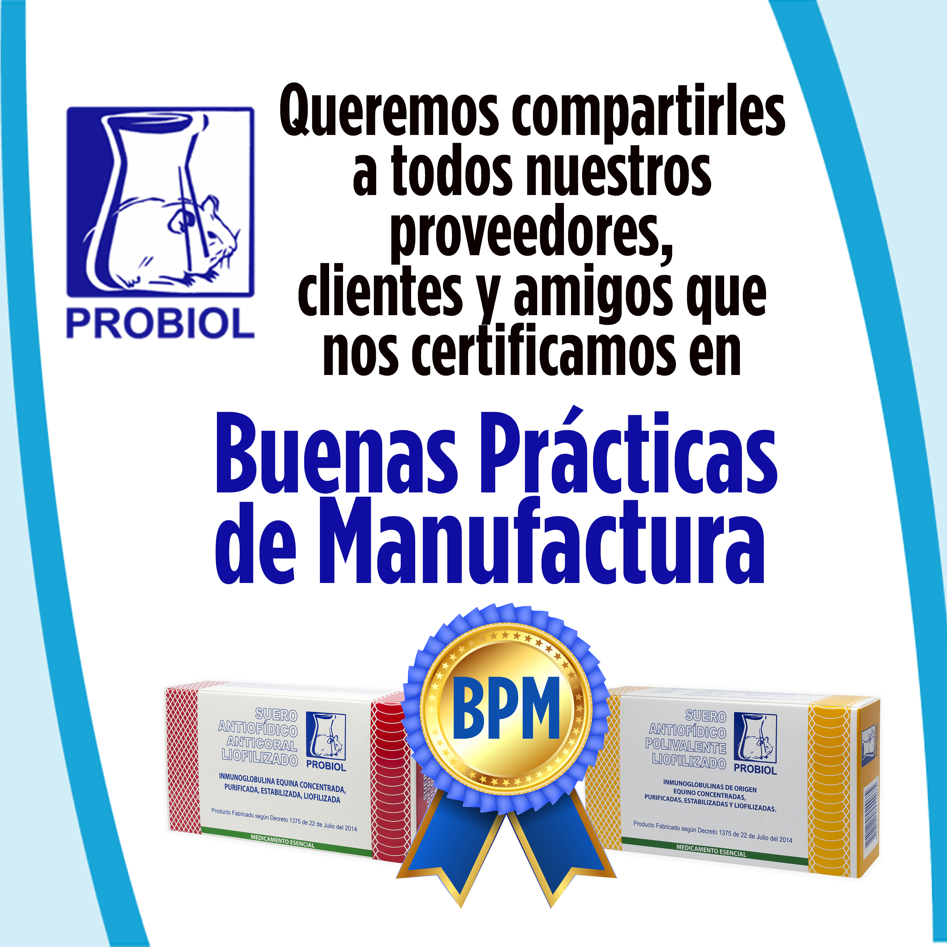 LABORATORIOS PROBIOL S.A es una organización que está comprometida con la producción y comercialización de productos biológicos y farmacéuticos de calidad, a través de la investigación, inversión en tecnología e infraestructura, personal capacitado y aliados estratégicos, enfocada al mejoramiento continuo, garantizando la plena confianza y satisfacción de nuestros clientes.